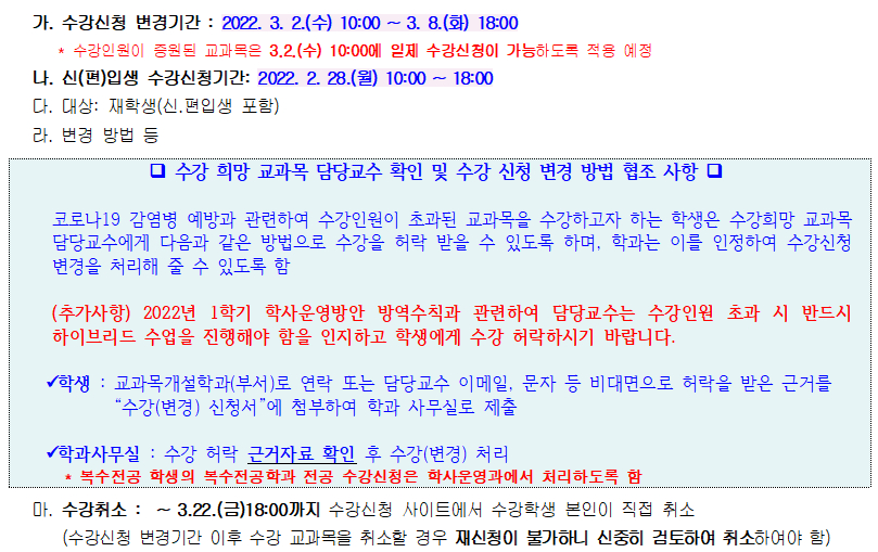 2022학년도 1학기 수강신청 변경 및 취소(서식첨부) 알림